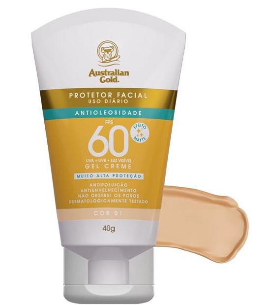 AUSTRALIAN GOLD PROTETOR SOLAR FACIAL COM COR GEL CREME COR 01 FPS 60 40G