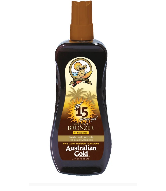 Protetor solar corporal em spray. Protege dos raios UVA e UVB enquanto hidrata, perfuma e bronzeia a pele.